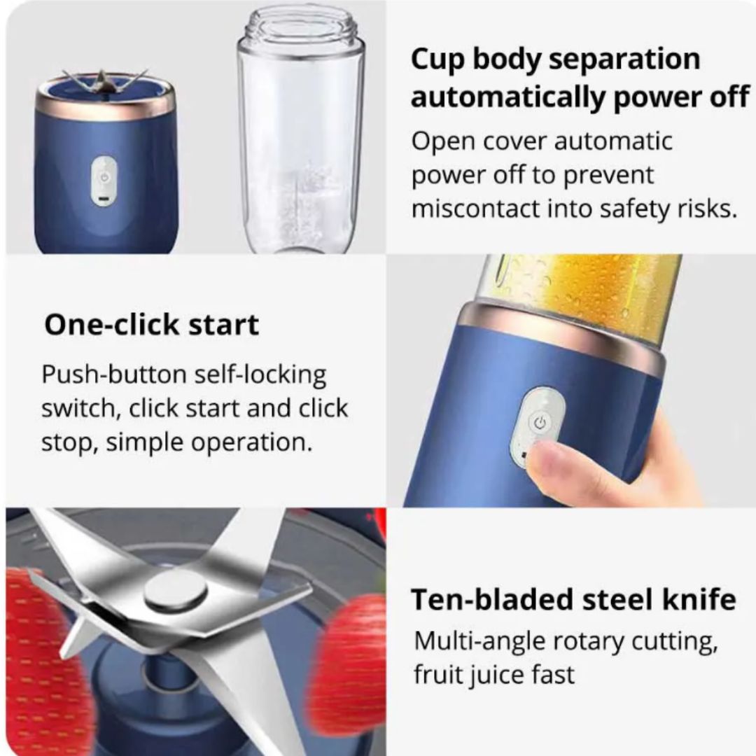Portable Small Electric Juicer Stainless Steel Blade Cup Juicer Fruit Automatic Smoothie Blender Kitchen Tool