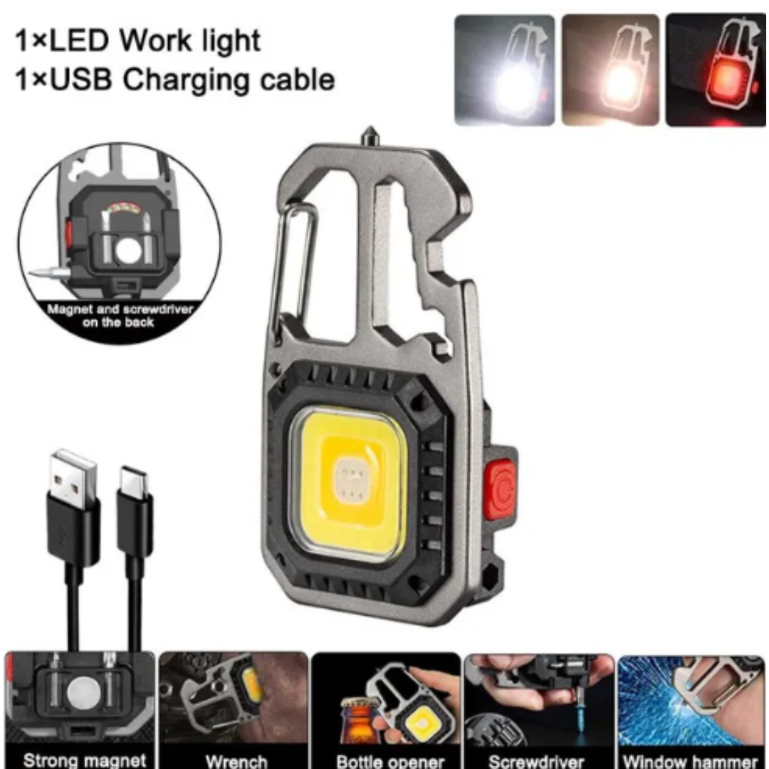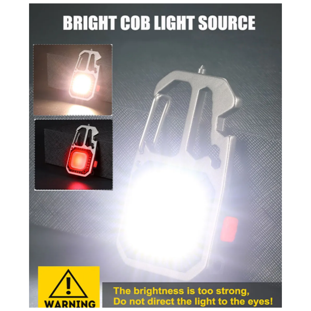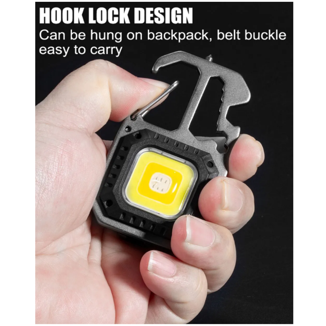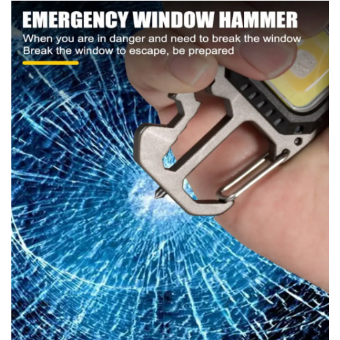 LED Portable Keychain Flashlight Outdoor Camping COB Work Light Emergency Lighting With Window Hammer Bottle Opener Lamp