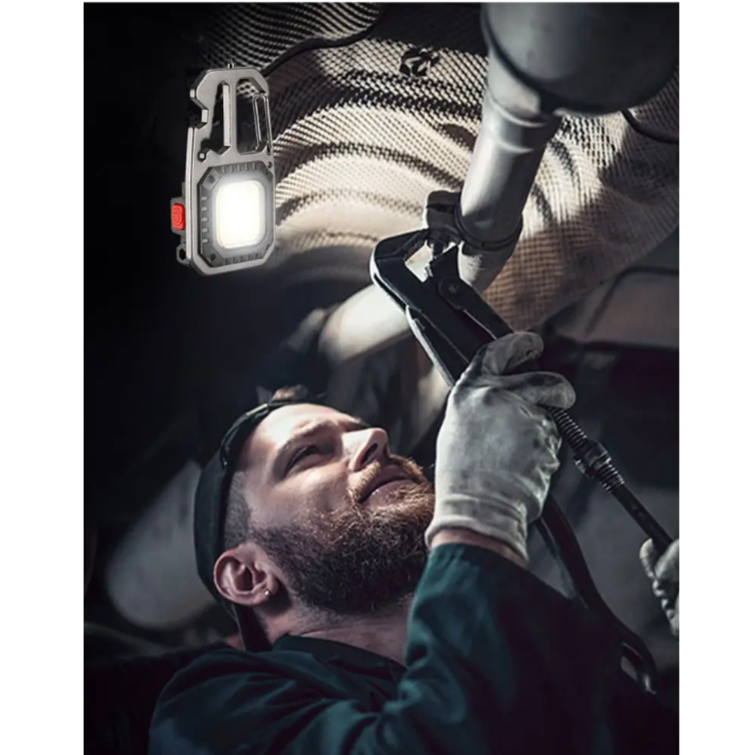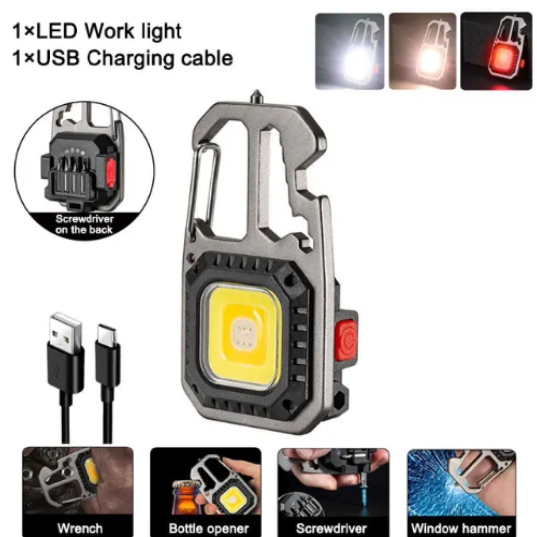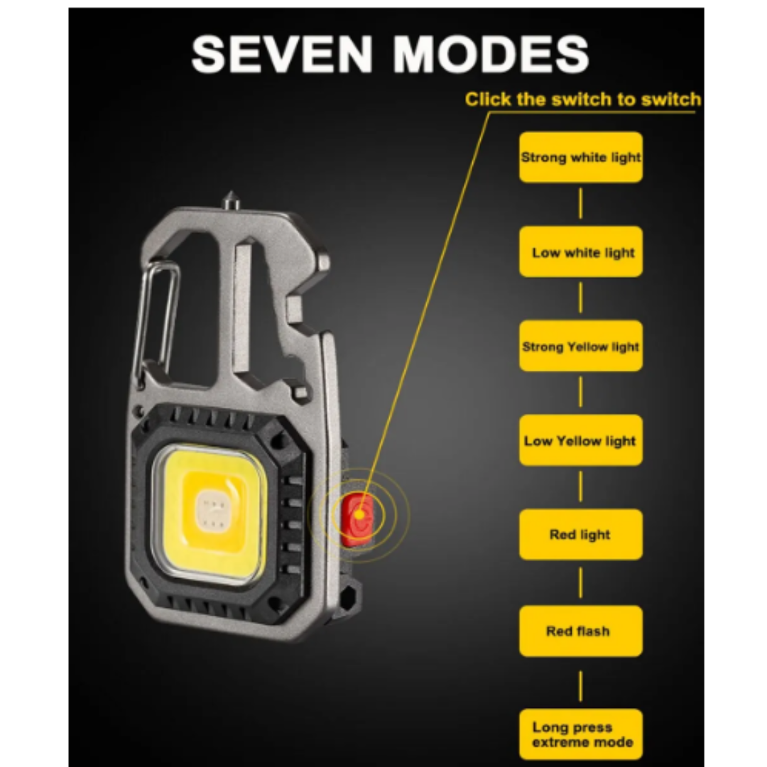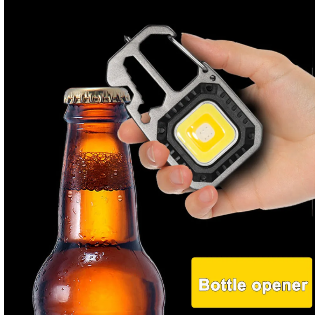 LED Portable Keychain Flashlight Outdoor Camping COB Work Light Emergency Lighting With Window Hammer Bottle Opener Lamp