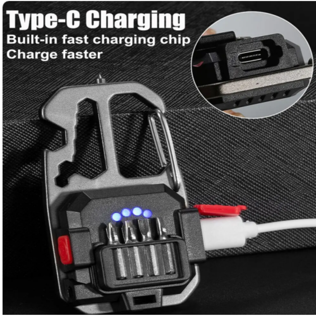 LED Portable keychain flashlight outdoor camping work light emergency lighting with screwdriver window hammer bottle opener lamp